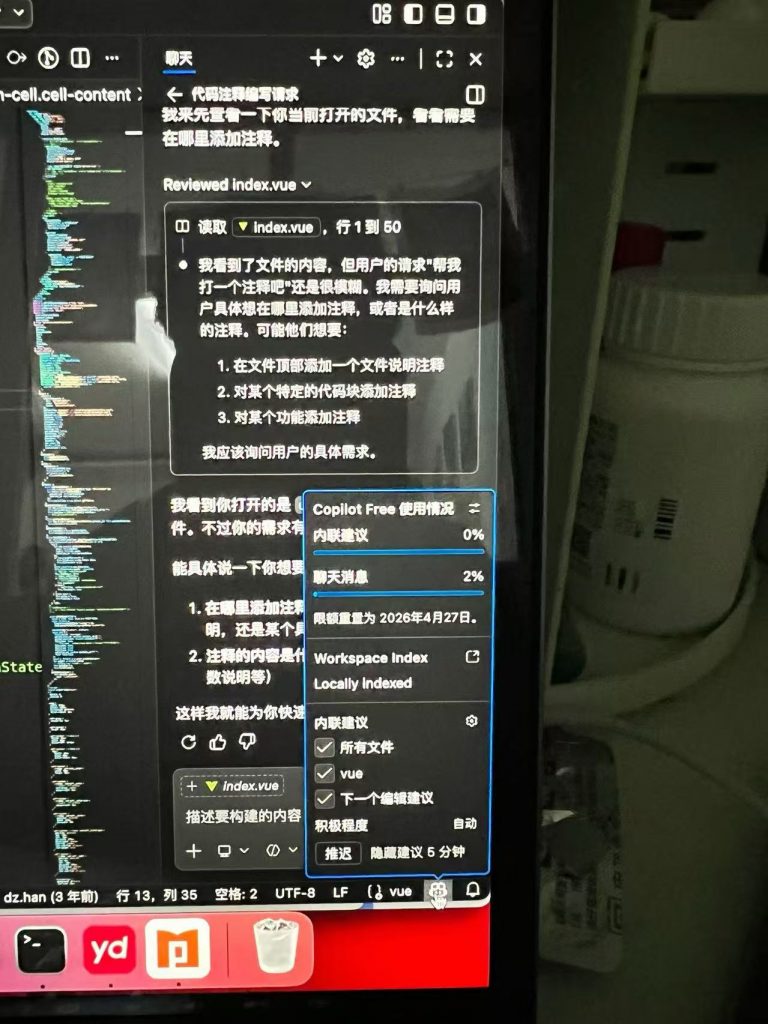 cursor,这个我用来生成了一个vue3 项目里面包含了 表单验证,数据写入 ,他直接给我创建文件了,相对很友好,代码也是比较语义化,相对美观,我抽出一份代码 可以看看,运行起来是没问题的,基本无报错